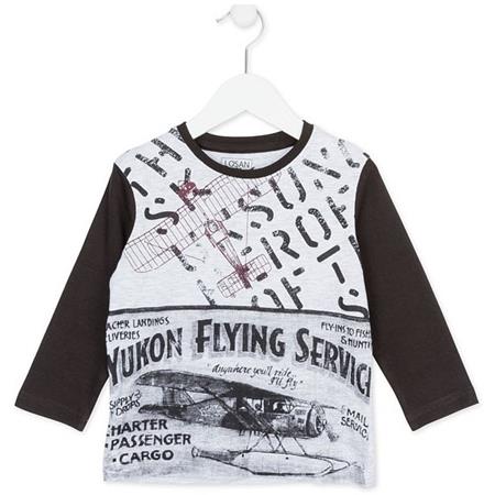 Majica z dolgimi rokavi v črno-sivi kombinaciji ima potisk starega letala, rokave pa v črni. Je iz bombaža in viskoze in zelo prijetna na otip. Čudovita majica za fante, ki imajo radi črno barvo.