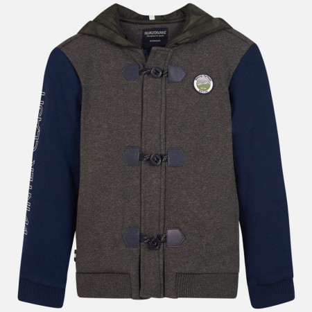 Topla jopica iz flisa z kontrastnimi materiali in kapuco za fante. Odlično nadomestilo jakne v prehodnih obdobjih.