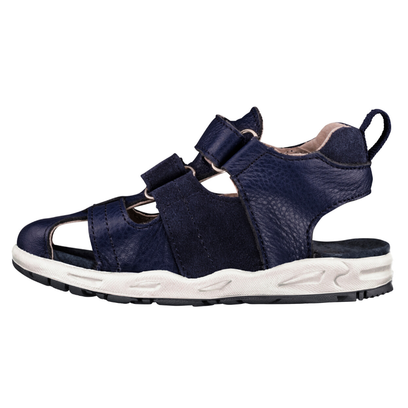 Sandali za fante imajo zgornji del iz mehkega usnja, zaradi katerega je tudi za najmanjše fantke čevelj udoben in prijeten. Zapenja se spredaj z dvema širokima ježkoma in se prilagodi vsaki nogi posebej. Da so prstki zaščiteni, je model spredaj zaprt. Ko se temperature res začnejo dvigovati, stopala ostanejo suha in ˝srečna˝ zahvaljujoč mehki in gladki semiš notranjosti, ki ˝upravlja˝ z vlago. Dodaten med-vložek naredi sandal še toliko bolj nosljiv in udoben, da otroci ne čutijo vseh kamenčkov na poti. Izjemno mehak in fleksibilen gumast podplat pa otrokom nudi sproščeno in lahkotno gibanje.