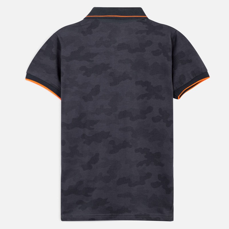 Polo majica s kratkimi rokavi za fante. Odpenja se na tri gumbe. V celoti v vojaškem potisku.