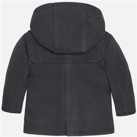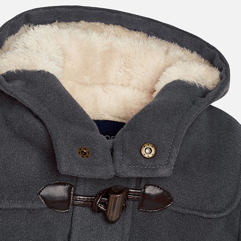Topel in mehak plašč za fantke je čudovit. V temno sivi barvi je že na otip zelo mehak. Notranja podloga pa je nežna in topla. Zapenja se na zadrgo, na vrhu in na dnu ima pritiskač in pa dva okrasna gumba. Kapuca ni snemljiva, se pa višje zapenja, tako da so usta in nosek na varnem. Zadaj ima rahel razporek, da je gibanje še lažje.