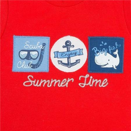 Komplet dveh majic brez rokavov je za male mišičnjake. V zelo prikupnem potisku okostja ribe in napisa na eni majici in treh morskih našitkov na drugi, so to majice, ki se bodo lepo prale, zaradi mehkobe in nežnega občutka pa jih bodo otroci radi nosili. Prav tako imajo majice na rami dva pritiskača za lažje oblačenje in slačenje. V treh barvitih kombinacijah - zeleno-modri, rdeče-beli in modro-beli - bodo popestrile garderobo vaših korenjakov.