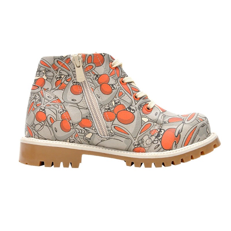 Topli potiskani piščančki za punce DOGO so idealni za vreme, ki prihaja. Gležnjarji so potiskani v norih, unikatnih potiskih, kjer sta skoraj vedno levi in desni čevelj si različna. Topla bombažna podloga je mehka, flisasta. Pri strani imajo zadrgo in zavezujejo se na vezalko. Sintetično usnje je izjemno mehko in prijetno za nositi. če želite še dodatno podložiti piščančke, lahko vstavite volnen vložek.