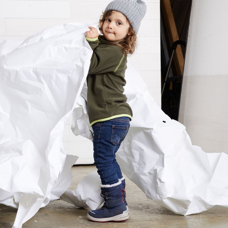 V notranjosti je topla, visoko podložna podloga in GORE-TEX membrana, ki je 100% vodoodporna. Obuvanje je preprosto. Prileganje pa odlično, saj si ga otroci z lahkoto zatesnijo z elastičnimi vezalkami in patentom za ustavitev. Podplat je dovolj visok, da za ščiti čevelj pred umazanijo in poveča samo trpežnost čevlja. Ojačani so tudi prstni in robni predeli, da držijo noge na mestu, ko so otroci najbolj aktivni.