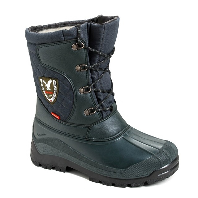 To pa so ZIMSKI ŠKORNJI z veliko začetnico! Za moške je Demar poskrbel z udobnim in izredno toplim modelom LOGAN. Zgornji material je vodoodporen, notranji, večplastni vložek pa iz 100% volne. Galoša je iz termično-obdelanega kavčuka. Vložek lahko vzamete ven in je večplasten - spodaj vložek iz pene, ki preprečuje mraz, znotraj pa vložek iz volne, da noge ostanejo tople. Škornji za prave moške!