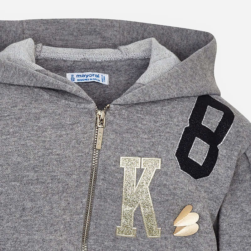 Športen dvodelni komplet za punce je sestavljen in hoodie-ja s kapuco in na zadrgo ter spodnjega dela trenirke.