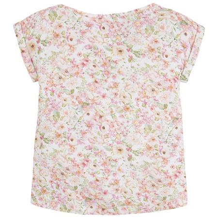 Majica s kratkimi rokavi in potiskom v srebrni barvi je resnično mehka in nežna majica. Rožasto blago v roza tonih je iz viskoze z dodanim elastanom za udobje in prožnost. Hrbtna stran je daljše rezana, kot sprednja, rokava sta zavihana. Majica za punce, ki ljubijo udobje in mehkobo.