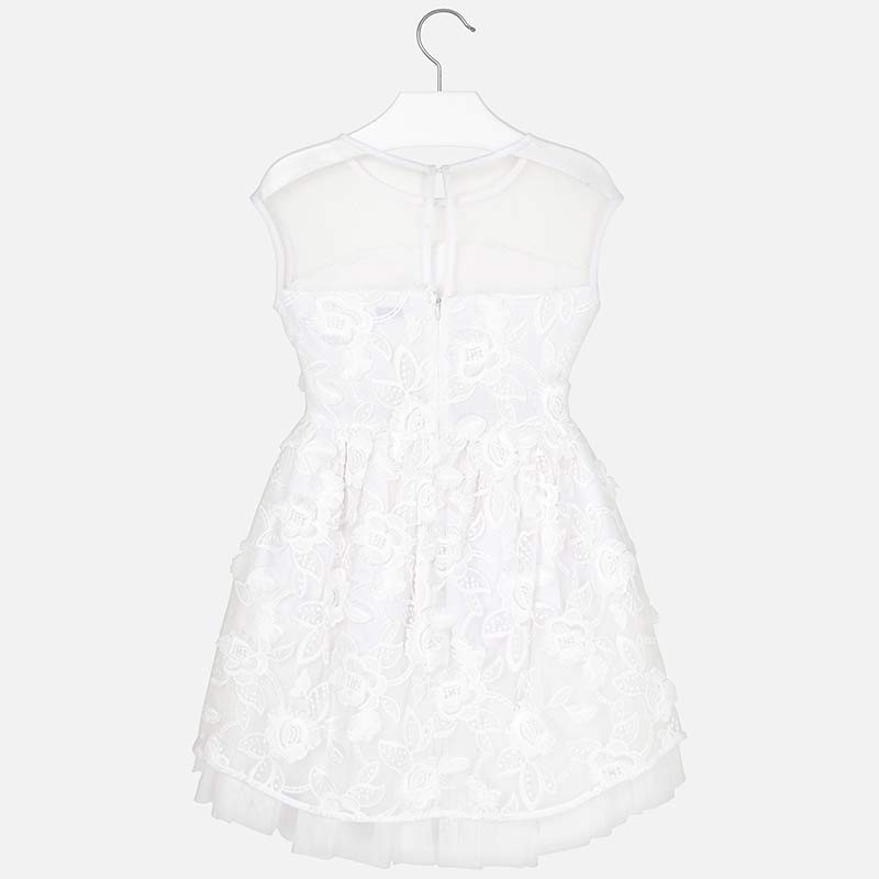 Svečana bela obleka iz tila in vezenih rož za punce.