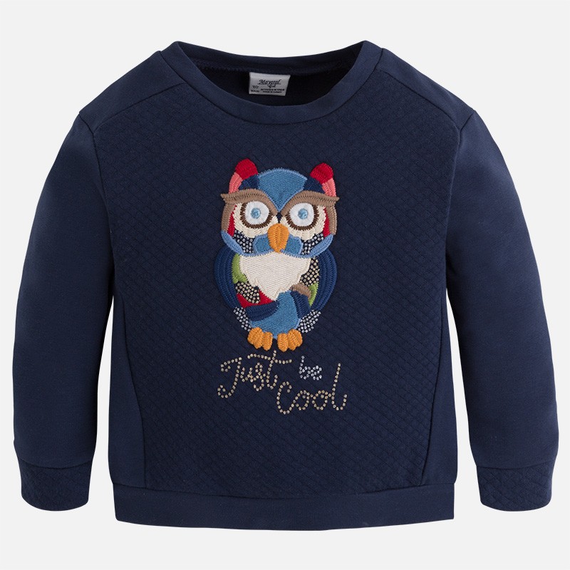 Čudovit športno-eleganten pulover. Je topel, iz flisa pulover, ki ga punce lahko kombinirajo na vsako oblačilo in za vsako priložnost. Krasi ga vezena sovica.