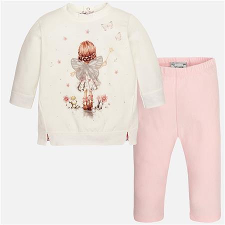Kompleti za otroke so zelo praktični, saj lahko dele kompleta kombinirate ločeno. Komplet tunika in legice za punčke je zelo poseben. Na puloverju oziroma tuniki je potisk čarobne vile, kjer ima roza komplet roza legice. Mehak in udoben komplet bo vaše deklice grel čez celo leto.
