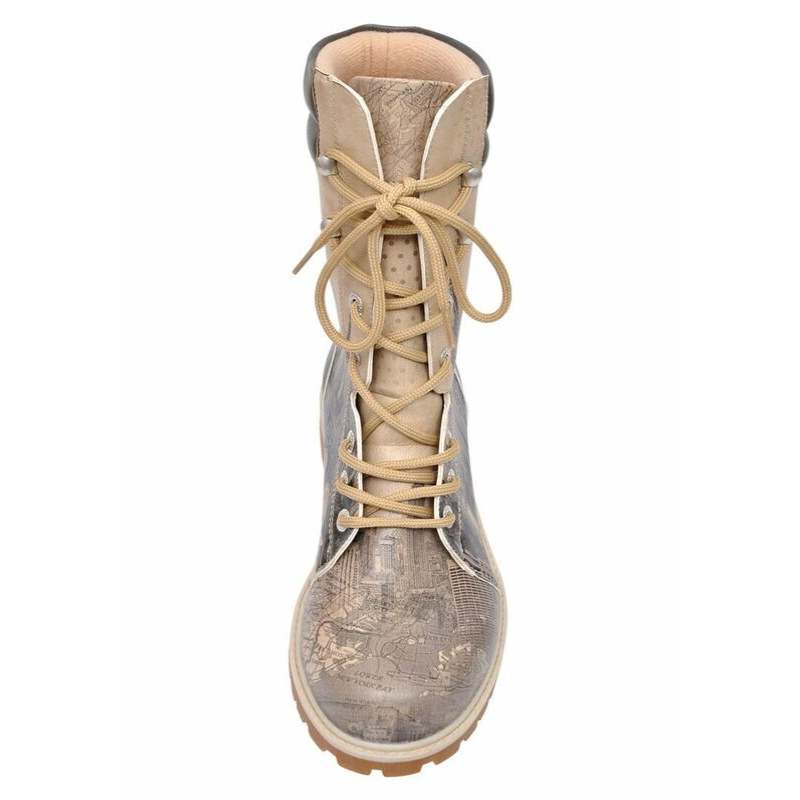 Topli in potiskani visoki škornji na vezalke za punce in za ženske DOGO so idealni za vreme, ki prihaja. Škornji so potiskani v norih, unikatnih potiskih, kjer sta skoraj vedno levi in desni čevelj različna. Topla bombažna podloga je mehka, flisasta. Zavezujejo se na vezalko in segajo čez gležnje. So še za 3 cm višji kot ostali škornji DOGO. Sintetično usnje je izjemno mehko in prijetno za nositi. Če želite še dodatno podložiti piščančke, lahko vstavite volnen vložek.