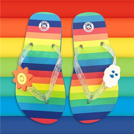 Japanke za punce FLIP LUCKY so za igrive punce ne glede na vreme. V barvi mavrice, z oblačkom na eni in sončkom na drugi japanki.