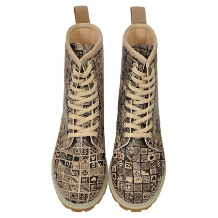 Topli in potiskani škornji za punce in za ženske DOGO so idealni za jesensko in tudi zimsko vreme. Škornji so potiskani v norih, unikatnih potiskih, kjer sta skoraj vedno levi in desni čevelj različna. Topla bombažna podloga je mehka, flisasta. Sintetično usnje je izjemno mehko in prijetno za nositi. Če želite še dodatno podložiti škornje, lahko vstavite volnen vložek.