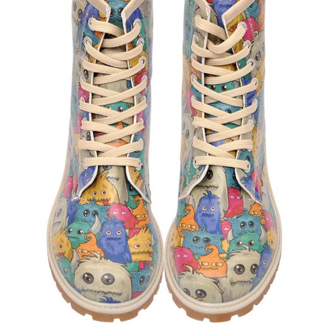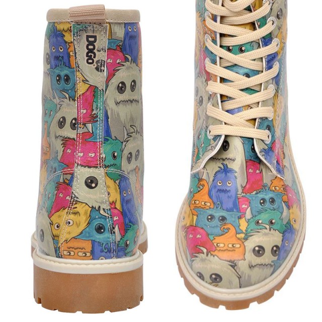 Topli in potiskani škornji na vezalke za punce in za ženske DOGO so idealni za vreme, ki prihaja. Škornji so potiskani v norih, unikatnih potiskih, kjer sta skoraj vedno levi in desni čevelj različna. Topla bombažna podloga je mehka, flisasta. Zavezujejo se na vezalko in segajo čez gležnje. Sintetično usnje je izjemno mehko in prijetno za nositi. Če želite še dodatno podložiti piščančke, lahko vstavite volnen vložek.